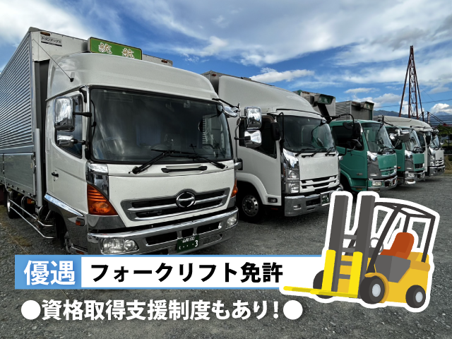 資格・経験 【歓迎】中型免許 【優遇】フォークリフト免許