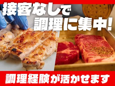 仕事内容 \\この求人のおすすめポイント// ■調理経験活かしてお仕事◎ ■ゴーストレストラン(宅配専門店)だから接客なし♪ ■Wワーク・扶養内OK! ■おいしいまかない1食440円~ ■応募は1分・履歴書不要・即日面接! 【お仕事内容】 いきなりステーキ宅配専門店での 【キッチン業務】をお願いします。 店内での接客やレジ対応は一切なく、 調理に集中できる環境が特徴です。 <主な業務内容> ・ステーキやハンバーグなどの調理・焼成 ・盛り付け、付け合わせの準備 ・オーダー内容に合わせた調理指示 ・食材の仕込み ・キッチン内の清掃、衛生管理 ★すべてマニュアル完備なので、 調理経験が浅い方でも安心してスタートできます。 ★現在はいきなりステーキが中心ですが、 かつき亭(とんかつ)、焼肉店等々、 新ブランドが増えていきます。 【1日の仕事の流れ】 出勤後はまず手洗い・身だしなみチェックからスタート。 当日の注文状況を確認し、 肉のカット、仕込み、焼き工程などを役割分担して進めます。 ピークタイム(18~21時頃)は注文が集中しますが、 基本3~4名体制で連携しながら作業するため、 一人で追われることはありません。 宅配専門店のため、 ・ホール対応 ・お客様との会話 ・レジ操作 は一切ありません。 「黙々と調理に集中したい」 「接客が苦手」 そんな方にぴったりの職場です。 【働く店舗について】 ・2025年11月オープンの新店舗 ・厨房は冷蔵・冷凍庫完備で動線もシンプル ・オープニングに近い雰囲気で人間関係もフラット