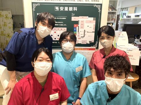 会社説明 安里眼科は、小さなお子様から高齢者まで、幅広い年齢層の患者さんを対象に診療を行っています! 受付で患者さまのお話を丁寧に伺い、その内容を視力検査員へつなぎます。視力検査や眼圧検査などを行った後、院長や看護師が診察を行い、必要に応じて手術まで担当します。 院内では、院長、看護師、検査員、受付が連携し、スピーディーかつ安心できる医療サービスを提供することを大切にしています! また、「見える喜び」と「健康であることの幸せ」を理念に掲げ、地域医療への貢献に力を注いでいます。 今後も患者さんの視力と健康を守るため、日々の診療に努めてまいります。