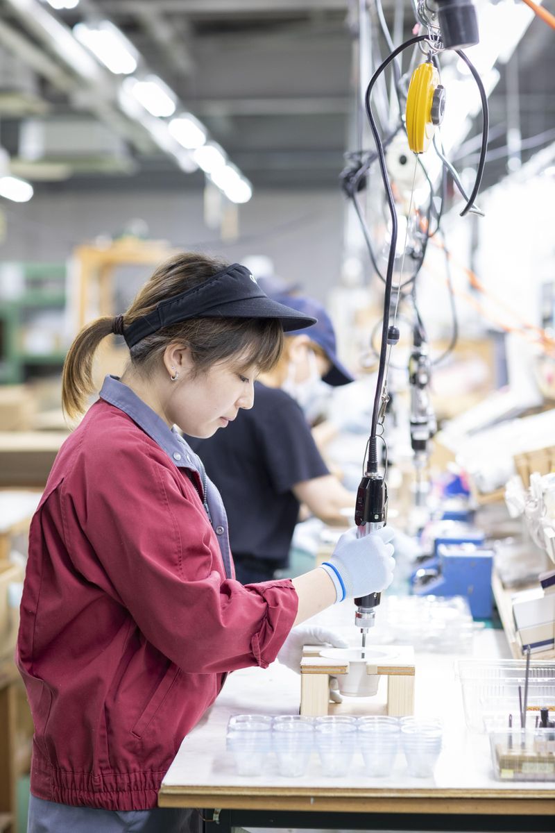 照明器具の組立スタッフ