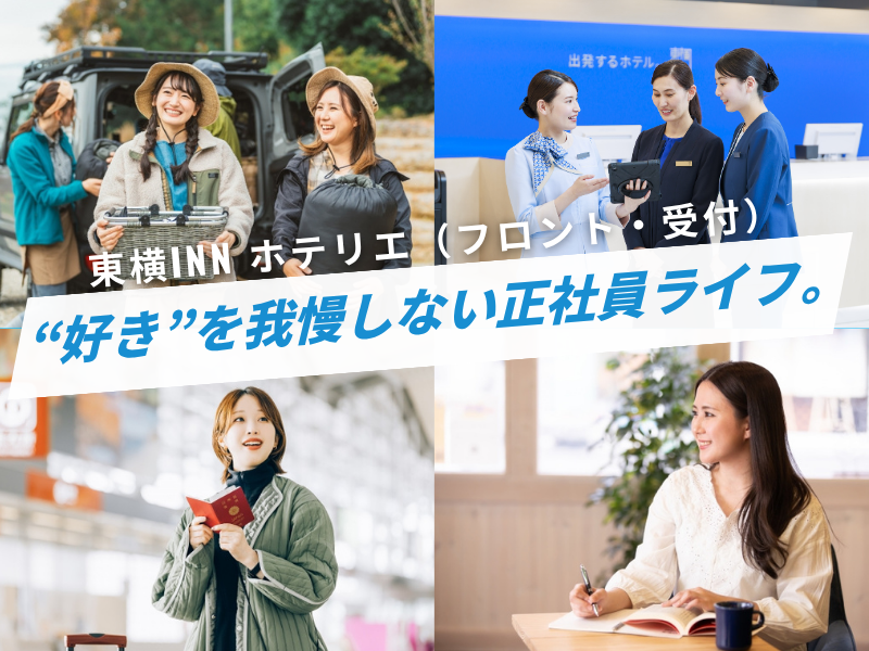 仕事内容 ⭐ 2026年7月3日新店OPEN! ⏩ 正社員でも出勤は 週2回ほど ⏩ 年間休日169日 ⏩ チェックインから翌朝まで関わる接客 ⏩ 複数名体制で進める業務 東横INNのホテリエは、 受付だけで終わらない接客職。 お客様をお迎えしてから翌朝まで、 安心して過ごせる時間を支える仕事です。 ○●————————————————————-●○ <東横INNのホテリエの働き方> 東横INNのホテリエは、 10:30~翌11:30の勤務スタイル。 勤務後は2連休になるため、 正社員でも出勤は週2回ほどです。 この勤務サイクルで、年間休日は169日。 平日の昼間に買い物へ行ったり、 空いている時期に旅行へ出かけたり。 有給休暇を組み合わせて、 6日の連休を取るスタッフもいます。 気持ちに余裕を持って働けるからこそ、 お客様にも笑顔で向き合えます。 ○●————————————————————-●○ <未経験でも始めやすい仕事内容です> お任せするのは、 チェックイン・チェックアウト対応、 予約受付やお問い合わせ対応、 館内のご案内など。 オープン前までは、近隣店舗で勤務可能。 研修を受けながら、 安心して新店舗でのスタートを迎えられます。 また業務は複数名で進めるため、 わからないことをすぐに確認できる環境です。 まずはできることから少しずつ覚えていけるので、 ホテル勤務が初めての方も安心して始められます。 ○●————————————————————-●○