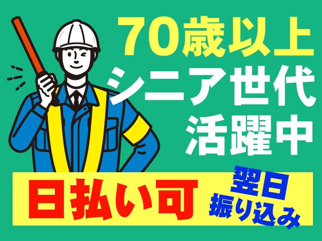 仕事内容 即日勤務OK!日払いOK(翌日振り込み)! 70歳以上のシニア世代も活躍中! <注目ポイント> 〇週1日~OK 〇シフト自由自在 〇給与保証有(現場による) 〇寮完備(即入寮OK) 〇定年退職者も活躍中 入社祝金5万円支給(規定有)! 未経験者歓迎!中高年アルバイトさんも活躍中 【仕事内容について】 さいたま市岩槻区本町1丁目の建設工事現場の 工事車両の出入り口誘導警備です。 搬入車両の誘導・歩行者誘導など ゲート前に立ち、周囲に目を配ります。 道路工事現場とは異なるので 体への負担も少ないのが特徴です。 <当社で働くメリット!> 〇早く終わっても日給保証もあり 〇単発バイト・スポットワークもOK 〇即入寮OKの寮完備 〇日払い・週払い制度あり 〇冬は暖かい防寒着、夏は涼しい空調服支給 【勤務について】 日勤のみ、週1日~OK 平日だけ・土曜のみなどシフト自由自在! 日曜日は固定休みです 自宅から現場へ直行直帰OK! ちょっとしたお小遣い稼ぎや 単発バイト・Wワーク・副業にもピッタリ! もちろん週5日のフルタイムもOK! <こんな方にオススメ> 〇施設警備アルバイト・パート経験者 〇60歳・70歳以上のシニアアルバイトさん 〇定年退職後も働きたい 〇スポットワークで働きたい 〇ブランクがある 警備アルバイト未経験者も大歓迎! 事前に法定研修を行うのでご安心ください。 日払い・週払いのほかに、前払い・仮払いも相談可能です 詳細についてはお気軽にご相談ください! 弊社は地域密着20年の不動産クレオンのグループ会社です グループ会社の強みを活かした即入寮OKの寮も完備しています ▼詳しくはホームページをご覧ください https://cleon-hd.co.jp/systems/ 少しでも興味を持っていただいた方はお気軽にお問合せ下さい! TEL.048-271-4037(採用係)
