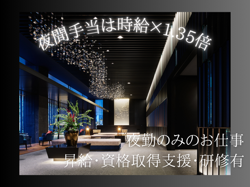 求めている人材 【必須条件】 ・週4日以上勤務できる方(夜勤2回) ・PC作業ができる方 【歓迎条件】 ・扶養内勤務も可能 ・学歴不問 ・フリーターさん歓迎 ・接客業経験大歓迎 ・職種未経験者歓迎 ・ブランクOK ・英語や中国語を活かしたい方 ・20代~40代の男性スタッフ、 主夫さん活躍中 ・長期歓迎/一年以上勤務できる方歓迎 ・アルバイトデビューも歓迎 ・就活に役立つお仕事がしたい方歓迎 【こんな方歓迎】 ・英語で日常会話が出来る方歓迎 ・留学生の方は日本語能力検定1級以上 ・将来は社員として活躍していきたい