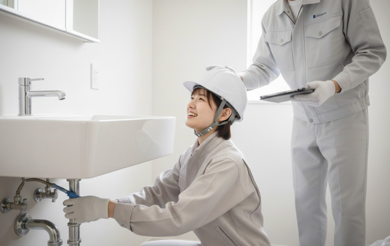 仕事内容: 私たちの仕事は 「生活の中の壊れたら困るもの」を直し、取り替えること! 「ガスが使えない。」 「お湯が出ない。」 「水まわりの調子が悪い。」 そんなときに必要とされる なくてはならない大切な仕事です。 ======== 【仕事内容】 住宅の設備工事を担当します。 ・コンロや給湯器の取替 ・衣類乾燥機の設置 ・床暖房の設置 ・水道工事全般 最初は同行からスタート。 できることから少しずつ任せます。 ======== ✅ 研修・スキルアップについて 入社後は先輩と現場に同行し、 仕事の流れや工具の扱いを学びます。 単に感覚任せではなく、 スキルアップシートで成長をしっかり可視化しています。 ・今できること ・次に身につける技術 ・昇給につながる基準 が明確なので、「できた!」が実感できる仕組みです。 また、半年ごとの評価制度があり、 スキルと取り組み姿勢の両方を反映! 技術職として、無理なく段階的にスキルをつけられる環境です◎