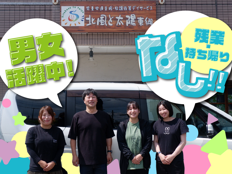仕事内容 子ども達の宿題の補助 お出かけの引率 ミニバンでの送迎 (慣れるまでは 先輩スタッフが同乗します) ⇒子どもと楽しく話しながら 安全運転ができればOK! イベント計画 遊びの見守り 等のお仕事 【放課後等デイサービスとは】 発達に遅れのある子ども達が、学校終わり等に利用できる福祉サービスです。 ※学童のようなイメージです。 子ども達の遊びの見守りやお絵かき等のサポートが中心◎ 当施設は多彩なイベントや行事を行っています♪ペットボトルロケットなどの工作やみんなでおやつを作ってカフェごっこをしたりと子ども達からも大好評◎未経験からスタートした方も多数活躍中! 子育て中の主婦(夫)さんも大歓迎です。 ブランクがある方も大歓迎!ゆっくり感覚を取り戻しましょう♪ ある程度仕事に慣れて頂ければ、あとは自主性をもって自由に働いて頂けます。より良い環境を目指しておりますので、是非あなたの意見も聞かせて下さい♪ 午前中は比較的ゆっくりとした時間があるので、イベント等の企画も行います♪ 平日のスケジュール… 学校・ご自宅にお迎え→課題や宿題のサポート→一緒に遊んだり、おやつを食べたり→片付け→送迎 学校休業日のスケジュール… ご自宅にお迎え→課題や取り組みのお手伝い→室内外活動→昼食→お出かけ・お楽しみ企画→おやつ・自由活動→片付け→送迎 ※児童指導員任用資格要件 *大学・大学院において社会福祉学、心理学、教育学、社会学を専修する学部学科を卒業 *2年以上児童福祉事業に従事(学童などもok) *小・中・高等学校教員免許保持 *社会福祉士、精神保健福祉士 *幼稚園教諭の資格保持 など… 「意外と自分も児童指導員として働ける!」というケースが多々あるので、気になる方はお気軽にお問い合わせください♪
