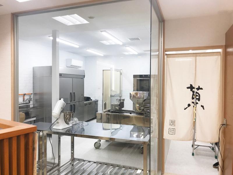 綺麗な工房内での和菓子製造。丁寧にご指導します。