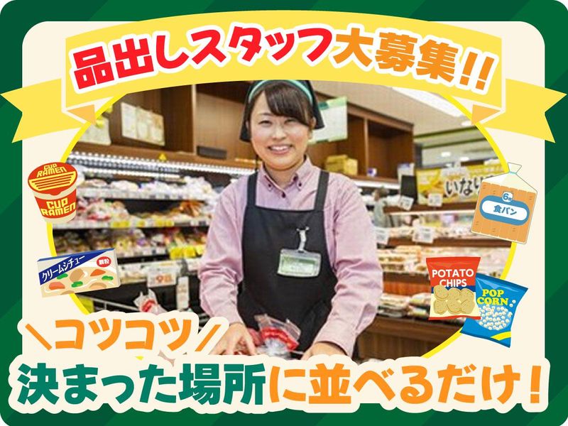 仕事内容 簡単な仕事で、早く慣れて稼いだほうが、 コスパもタイパもいいのでオススメです。 ━━━━━━━━━━━━━━━━━ 【 お任せするのは… 】 ①商品が入った箱を開ける ②決められた棚に並べる ③キレイに見えるように整える ▼ ▼ ▼ ▼ ▼ ▼ たったのコレだけ! 野菜や果物などの青果を、棚に陳列するだけ! 難しいことは一切ありません◎ ━━━━━━━━━ ◎オシゴトPOINT◎ ━━━━━━━━━ 【★】裏方だからほぼ接客ナシ! 「接客はニガテだな…」という方も安心のコツコツ・モクモク作業◎自分の作業に没頭したい方にもおすすめです! 【★】お店づくりが楽しい! 新商品が入荷したら目立つように並べたり…ご希望次第で、あなたのアイデアでお店を彩ってもOK!! 自分の並べた商品が売れていくと楽しいですよ♪ 【★】研修しっかり! 並べていく場所も順番に覚えていけばOK! 難しくないので覚えやすく、1週間くらいで慣れているスタッフさんがほとんどです。