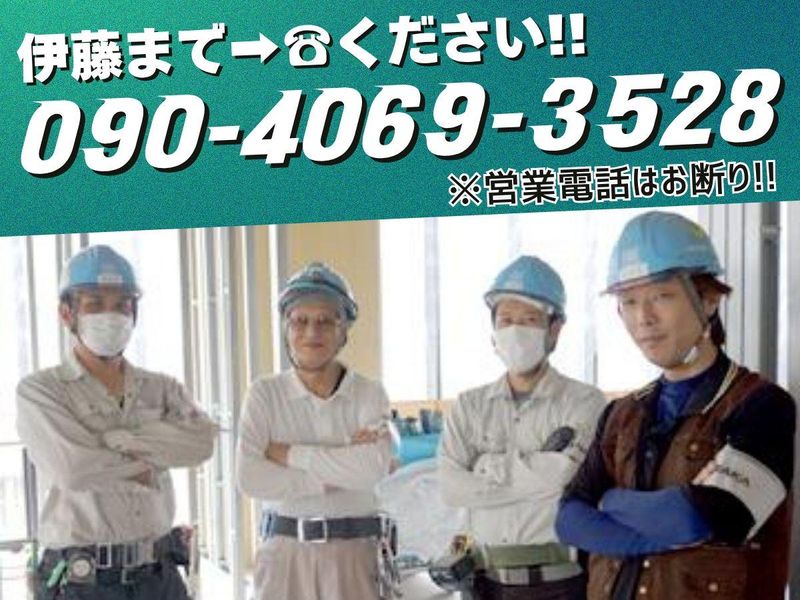 仕事内容 -+-+-+< 新規スタッフ募集!>+-+-+- Let's all work together! I'm looking forward to meeting you! 『一緒に働こう! 会えるのを楽しみにしています!』 電話応募推奨! 優先的に面接します ☎090-4069-3528➡伊藤まで (営業電話お断り) -+-+-+-+-+-+-+-+-+-+-+-+-+-+-+- 【仕事内容】 軽鉄ボード作業員マンションや オフィスビルなどの壁の下地&ボード貼りを おまかせします! (現場は都内メインの関東近県です。) < 高収入で長期安定!> 日給は1万6000円以上! スグに安定した収入をGETできます!! 経験やスキルによって収入UPも可能! < 17時定時&残業少なめ!! > 仕事後のプライベートの時間も しっかり確保できる環境です! 長期休暇も整えていたりと、 お仕事とのメリハリもバッチリです! -+-+-+-+-+-+-+-+-+-+-+-+-+-+-+-