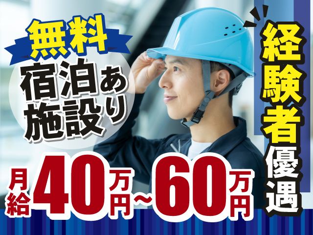 【保険制度】 雇用保険、労災保険、健康保険、厚生年金 待遇 ◆社会保険完備 ◆無料宿泊施設あり ◆各種手当支給 ◆交通費支給 ◆作業着・装備品貸与
