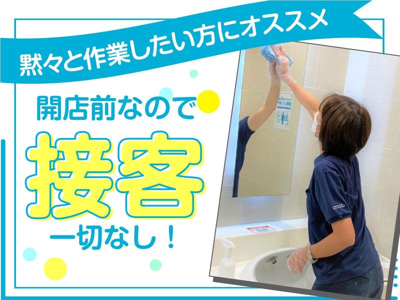 仕事内容 ☆★━━━━━━━━━━━━━━★☆ 程よくカラダを動かしながら 健康的に収入UPしませんか♪ ▶早朝2時間30分だけの勤務 ▶Wワークや扶養内勤務OK ▶未経験大歓迎(^^)/ ☆★━━━━━━━━━━━━━━★☆ ≪具体的な業務内容≫ ✅レジ回りの除菌清掃 ✅トイレ清掃 ✅ガラスの拭き作業 ✅床清掃(除塵中心)など 開店前の時間なのでお客様対応なし! 未経験でも充実した研修がありますのでご安心ください。 残業ナシで無理なく働ける環境です。 …………………………………… ✨家事の延長で働けます!✨ …………………………………… 清掃に使う道具で特殊なものはなく、 作業自体もとても簡単なので ふだんのお掃除が得意な方であれば 清掃業未経験の方も大歓迎◎ 接客なしで黙々と働けますよ! …………………………………… ✨20代~60代まで活躍中✨ …………………………………… 子育てが落ち着いて復職した主婦さんや 定年後のお小遣い稼ぎで働くシニアまで 幅広い年代の方が活躍中♪ 別のお仕事との掛け持ちもOK! ご家庭の都合や本業、私生活に合わせて 無理なく続けられるお仕事です◎ …………………………………… ✨この仕事のここが魅力✨ …………………………………… ・20~60代の幅広い年代の方が活躍できるお仕事! ・Wワーク、副業にもピッタリ♪ ・未経験OK!家事の延長で働けます! ・接客なし!コツコツ、モクモク作業が好きな方にぴったり! ・家庭や本業・プライベートとの両立可能! ・通勤&通学前に短時間のお仕事! ・家事のスキルも活かしたい! ・清掃のコツを学びたい♪など