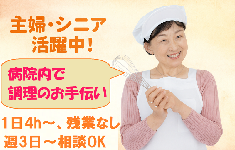 仕事内容 ⭐未経験・ブランク復帰も大歓迎!⭐ 土日祝できる方を積極採用中 週3日〜、扶養範囲内OK! 休憩なしで4h、フルタイムで8hもOK ═══════════════════ ❖ 家庭の延長でできる調理補助 ❖ 【新体制に伴い、2名増員募集】 主婦・60歳以上のシニアも活躍中 ═══════════════════ ⏩ 面接1回のみ!試験なし! ⏩ スマホで簡単1分応募! ⏩ 電話応募も歓迎▶0286385655 【お仕事内容】 安定して働ける病院内給食室での調理補助です。 ・冷菜の味入れ、加工など ・食器の準備、盛り込み作業など 勤務時間により業務内容が変わります。 スタッフみんなで分担するから、未経験の方も安心ですよ! ⭐お料理好きな方大歓迎! ⭐残業はありません! ⭐お昼はおいしい給食付き!無料♪ ⭐制服あり。マスクなども会社負担!準備不要! 【こんな会社です】 調理場の運営は、創業60年上「食」のスペシャリスト集団「イートランド株式会社」が行っています 全国の病院、学校、企業の給食サービスをメインに行っているため、多くのスタッフが働く会社です ✨中高年・シニア、60代も活躍中。 ✨当社はWワークや兼業OK!副業OK!