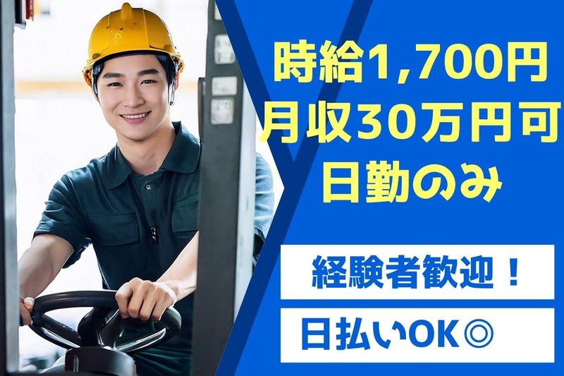 求めている人材 ※要フォークリフト免許 ・20~50代まで幅広く活躍中 ・ブランクあり、経験が浅い方も歓迎
