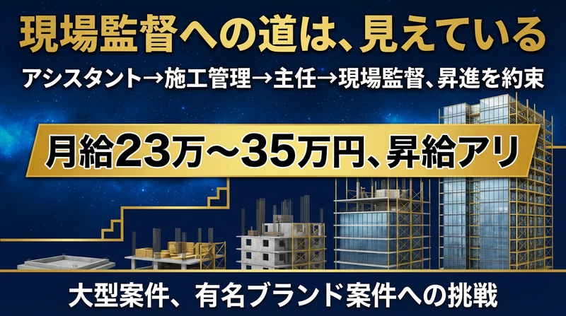 仕事内容 ✨まずは「施工管理のサポート役」からスタート!✨ ベテランの施工管理のもとで、 現場を支える“施工管理補助” として活躍していただきます。 ✅ 月給23万円~35万円◎昇給あり ✅ 土日休みの週休2日制でプライベート充実◎ ✅ 30~50代活躍中◎面倒見の良い先輩が丁寧に育成 ✅ 資格取得支援制度あり◎費用は会社負担 【具体的な仕事内容】 誰もが憧れる高級レストランや 高級ホテルのラウンジ、結婚式場、 ブランドショップ、イベント会場―― そんな“特別な一日”や“思い出に残る時間”が 過ごされる空間づくりの施工管理のアシスタントとして、 進行を支えていく仕事です。 著名デザイナーや有名ブランドの プロジェクトに携わるチャンスもあり、 まずは補助業務からスタートし、 ゆくゆくは「施工管理」への ステップアップも目指せます。 ✅主な仕事内容(施工管理補助) ・施工管理が作成した工程表・ 図面のチェック、簡単な修正サポート ・資材の数量確認や発注の補助、納品チェック ・写真撮影や、進捗状況の記録・整理 ・職人さん・協力会社との連絡調整のサポート ・現場の片付け・養生・安全掲示物の設置補助 など ※事務作業や経理は専門部署が担当する分業制のため、 「施工管理業務を支える補助業務」に集中できる環境です。 【1日の流れ】 1日の流れ(例) 08:00 現場到着・朝礼準備 施工管理と一緒に当日の工程表を確認し、 必要な資料や段取りをサポートします。 09:00 朝礼・安全確認のサポート 職人さんが集まる朝礼で、 資料配布や安全標識の準備などを行います。 10:00 資材確認・写真撮影 必要な資材が揃っているかをチェックし、 施工前・施工中の写真を撮影・整理します。 12:00 昼食休憩 近くのお店でランチを楽しんだり、 車の中でリラックスしたり。 しっかり休んで午後に備えます。 13:00 進捗確認の同行・簡単な記録 施工管理と一緒に現場を巡回し、 進捗状況をメモしたり、指示内容を まとめたりと“記録役”としてサポートします。 15:00 クライアント打ち合わせの準備 高級レストランやホテルの担当者との 打ち合わせに向けて、資料の印刷・ 図面のセットなど、準備業務を行います。 17:00 日報作成補助・翌日の準備 施工管理が作成する日報のために、 写真やメモを整理。翌日の工程表の コピーや資料準備もお任せします。 18:00 退社(現場によっては直行直帰OK) 現場からそのまま帰宅できる日もあり、 オン・オフのメリハリをつけて働けます。 【会社について】 株式会社白線社は、高級レストラン・ 高級ホテル・商業施設・イベント会場・ 結婚式場などを中心に、内装工事を手がける会社です。 細部までこだわり抜いた高品質な施工で、 多くのお客様から厚い信頼をいただき、 リピート案件やご紹介案件が多数寄せられています。 著名デザイナーが設計した施設や、 有名ブランド店舗の施工実績もあり、 業界内での評価も高まっています。 今後は関西圏だけでなく全国への 展開をさらに加速し、年間施工件数を 現在の1.5倍に増やすことを目標に成長を続けています。 この成長は、社員一人ひとりのキャリアアップや、 より大規模で魅力的なプロジェクトへの 挑戦機会にも直結します。 ✨社員インタビュー/30代男性(施工管理補助スタート) 「前職は建築関係でしたが、最初は“施工管理って難しそう…”という印象でした。 白線社ではまず施工管理補助としてスタートし、先輩の現場に同行しながら 現場の流れや図面の見方、職人さんとのやり取りなどを一つひとつ覚えていきました。 資格取得支援制度で、受験費用を会社が全額負担してくれたおかげで 無事に関連資格も取得。今では小規模現場なら施工管理として 任せてもらえるようになりました。 事務作業は専門部署がサポートしてくれる分業制なので、 現場のことに集中できるのも大きな魅力です。 年に一度の社員旅行では、普段は現場が違うメンバーとも ゆっくり話せるので、いいリフレッシュになっています!」 【キャリアパス】 ・施工管理補助(アシスタント/先輩と一緒に現場の基礎を習得) ・施工管理(小~中規模の現場を担当) ・主任(複数現場の管理・後輩の教育) ・現場責任者(大型プロジェクトの統括・クライアント対応の中心) まずは補助からスタートし、経験を積むほど、 高級ホテル・ブランドショップなど“象徴的な案件”を 一人の施工管理として任されるチャンスも広がります。