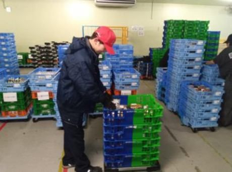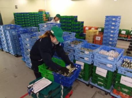 物流センターの食品仕分け作業