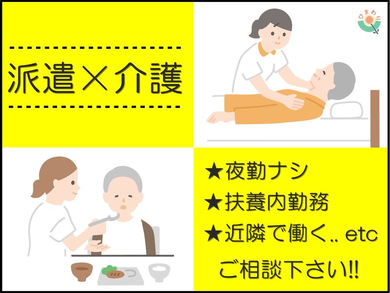 仕事の内容 《小規模多機能型居宅介護》で 介護スタッフさんの募集です!! 地域の介護を必要とする方々や、そのご家族の皆様の毎日を 支えられるよう努めています* 利用者様とスタッフが地域のイベントへ参加をするなど、 生活に楽しみを提供できるよう心がけています◎ 【この求人のポイント!】 ・30代・40代・50代活躍中! ・開設2010年03月 ・登録定員25名(通所15名、宿泊9名) ・週1~5日で相談OK! ・夜勤なし/夜勤専従もOK◎ ・曜日・日数などご相談ください♪ ・マイカー通勤相談OK ・ブランクOK! 【ひまわりのサポート体制】 ・お忙しい方やお電話が苦手な方はLINEでの相談OK ・多数案件あり/ご希望に合わせてご案内可能! ・専任のコーディネーターが、 お仕事探し~就業後のアフターフォローまで徹底サポート! ・面談・初日も同行するので安心◎ 【業務内容】 食事介助、入浴介助、排泄介助、移乗介助、レクリエーション、記録 等