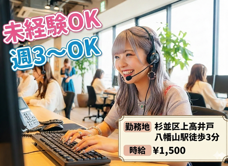 【勤務地】 東京都杉並区上高井戸1-8-20 ALPS八幡山ビル601 (京王線「八幡山駅」徒歩3分) 原則屋内禁煙、喫煙室あり 【応募条件】 ・採用率99%!積極採用中でチャンス大◎ ・未経験OK/8割以上がゼロからのスタート ・ワークライフバランス重視の方向け ・学歴/経験/資格不問 ・パソコンの基本操作ができる方(入力ができればOK) ・受電メイン/ノルマなし/クレーム対応ほぼなし ・希望シフト制/週3日~OK/副業・WワークOK ・交通費全額支給(上限月30,000円) ・服装/髪型/髪色/ネイル/カラコン自由!自分らしく働ける ・子育てや家庭との両立もサポート! ・働きやすい環境で長期安定勤務が可能 ・「安心/丁寧なご案内」が評価されるお仕事です ・ブランクのある方も歓迎 ・主婦(夫)、Wワーク、フリーター歓迎 ・即日勤務可能 (選考はスムーズに行い、最短7日以内の勤務開始も可能(ご相談可)です。) 【応募後の流れ】 応募 → 面接1回 → 採用 履歴書をご持参ください。職場見学も可能です。 ☎電話応募:03-5738-7014(総務部) 「Indeedを見た」とお伝えください。 <最短1分で応募完了> 画面下の「応募画面へ進む」から簡単エントリー可能!