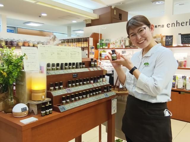 仕事情報 ● 仕事内容 ハーブやアロマの魅力を活かし、お客さまに寄り添う接客が中心です。商品の品出しや準備、店内清掃に加え、発注や品質管理など店舗運営にも少しずつ関わります。試飲準備や荷物運搬など、体力業務もありますが、自然の恵みを伝えるやりがいを感じられる仕事です。あなたらしい接客スタイルで、着実に成長できる職場です。 楽しく成長できる エンハーブでは、研修中からミント → ローズマリー → ラベンダー → ジャスミン → ローズへとステップアップする制度があります。ステージに応じたオリジナルバッジがあり、成長が見える化されることで、やりがいを持って取り組めます。自分のペースでステップを踏みながら、少しずつできることを増やしていけます。 先輩スタッフの声 「なんとなく調子が悪くて」と訪れたエンハーブの店舗で、スタッフの方がじっくりと話を聴いてくれて、今の私に合ったハーブを丁寧に提案してくれました。香りに癒やされたのはもちろん、その優しさに触れて心がふっと軽くなった、あの時の安心感を、今度は私が誰かに届けたいと思い、エンハーブに応募しました。 自分自身も癒やせる職場 働きながら、ハーブのある生活をもっと身近に楽しめるのもエンハーブの魅力のひとつ。スタッフには従業員割引があり、店頭の商品をお得に購入できます。気になるハーブティーを自分で試したり、家族の体調管理に役立てたり。自分の“整えたい”に向き合いながら、お客さまにも寄り添える接客ができるようになります。 企業紹介 ハーブ専門店 enherb(エンハーブ)は、「植物の力で人の心と体を整える」というコンセプトのもと、全国にハーブ専門店を展開しています。お客さまに寄り添う丁寧なカウンセリングを重視し、体調や目的に応じたオーダーメイドのご提案を行います。魅力や楽しみを伝えながら、自分自身の心と体のケアも大切にできる職場です。