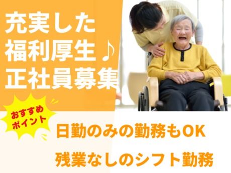 仕事内容 \ここがポイント/ ★介護職(正社員) 充実した福利厚生♪ ★日勤のみOK! 決まった時間で働きたい方にも オススメです◎ ★資格を活かせる! 資格は持っているけど 業務経験がない方も安心! 先輩スタッフがマンツーマンで 教えてくださいます◎ ★希望休が取りやすい! お子さんがいる方も安心して 就業できます♪ *・。・。*・。・。*・。・。* <仕事内容> 【住宅型有料老人ホームでの介護業務】 ◇小規模(13名)の家庭的な住宅型有料老人ホームです。 ・身体介助 ・排泄介助 ・入浴介助 ・オムツ交換 ・清掃 ・記録業務 など ※雇入れ後の業務の変更はありません。 *・。・。*・。・。*・。・。*