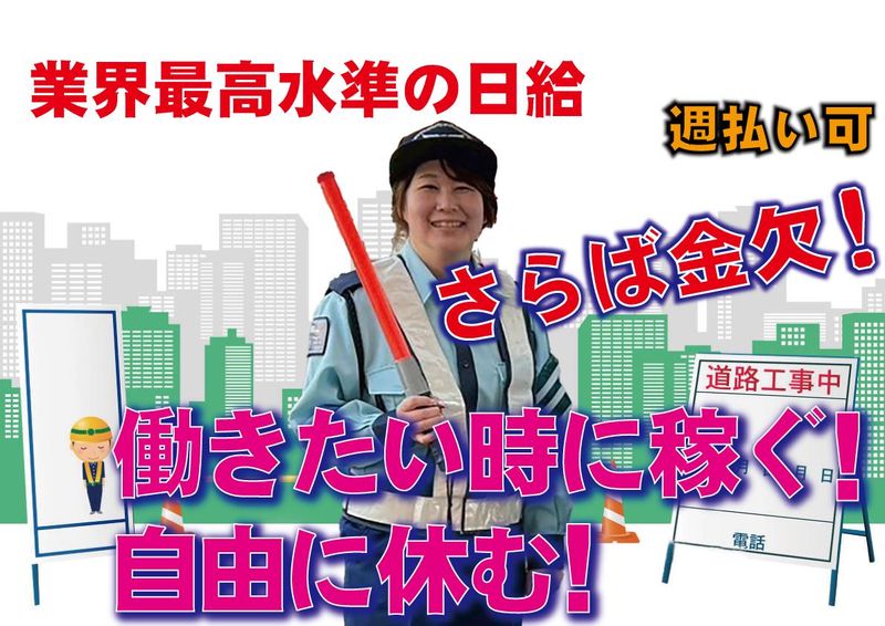仕事内容 お仕事内容はコチラ! 道路をご利用される歩行者・車両のお声がけ・誘導・案内をお願い致します。 「こちら足元お気を付け下さい」「こちらをお通り下さい」等 こまめな休憩もとれますし、早く終わることも多いです 18歳~70代まで大活躍中! やる気さえあればOK。 年齢、性別、学歴など一切不問です。 最近では、若い女性隊員さんや学生の子達も バリバリ働いてくれています。 外国人スタッフも活躍中です。 警備のお仕事が未経験でも全く問題ありません。 研修時はわかるまで じっくり教えますので、 ご安心ください! 安定して、長期でガッツリとお仕事ができます。 その他多数の現場、お仕事がございます♪ ・短期で働きたい! ・Wワークしてみたい ・長期でガッツリお金を稼ぎたい! ・やりがいのある仕事に就きたい! 志望理由はどんな理由でも構いません。 まずはお気軽にご応募をお待ちしています♪ 重いものを運んだりする事はございません! 資格取得も会社がしっかりサポート!! 資格取得されるともちろん給与UP!! 未経験スタートの方がほとんどです! 最初から難しい事をお願いする事は無いので、すぐに仕事も覚えられます! 未経験大歓迎! いきなり本番!ではなく、事前に研修(ビデオを見るなど)がありますので安心してスタートできます。 定年無し、50代60代、シニアの方も活躍中! 体調面も考慮して安心して働けます。 定年がないので安定して長く働くことができます。 施設警備・常駐警備・イベント警備 週2から入れます! 昼勤のみのシフトも可能! 夜勤のみのシフトも可能!