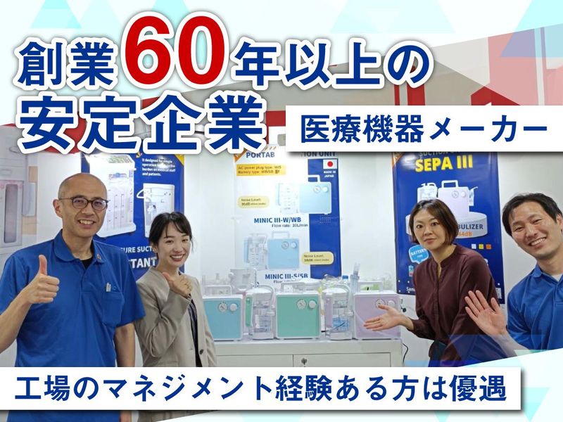 求めている人材 【歓迎します!】 ・生産工場全体の運営、改善活動、 工場長などの指揮業務経験がある方 ・未経験歓迎 ・20代若手活躍中 ・30代、40代の経験者の方活躍中 \求める人物像/ ✅新しいことに前向きに チャレンジできる方 ✅チームをまとめたり、 周囲を元気にできるタイプの方 ✅仲間を巻き込みながら 新しいことに挑戦できる方 ✅「リーダーシップを発揮して 現場を動かしたい!」という方 未経験の方も、経験者の方も 上記に当てはまる方、大歓迎です✨ ――――――――――――――――――― 「現場の力で、医療を支える」だけでなく、 「チームの力で、会社を動かす」 ――そんなリーダーシップを発揮できます! あなたのアイデアや行動力で、一緒に “楽しい工場づくり”を進めていきましょう!