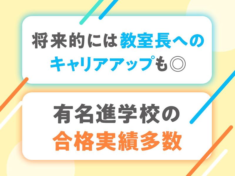 求めている人材 ★第二新卒・未経験者歓迎! ※経験者優遇あり 【必須】 ・大卒以上(中退の方もOK) ・普通免許(AT限定可)をお持ちの方 【こんな方にはピッタリ】 ・じっくり生徒と向き合っていきたい方 ・勉強を教えるのが好きな方 ・問題を解く達成感や面白さを伝えられる方
