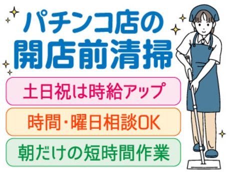 仕事内容 ★週2・3日~OK!家事の延長感覚でお掃除♪40代・50代・60代が多数活躍中! ………………………………………… ●職場は空調完備の快適空間♪ ●家のお掃除感覚でできるお仕事 ………………………………………… 《具体的には…?》 ・フロア清掃 ・トイレ清掃 ・ごみ回収 など 店内をキレイにするお仕事です! 掃除機など身近なものを使うので 覚えることもとっても少なめ☆ むずかしい作業は一切ない ルーティンワークだから 未経験やブランクのある方も 安心してはじめられますよ! ブランク復帰の主婦さんや 初バイトの学生さん、 定年後のアルバイトなど 若い方~ミドル・シニアの方まで 幅広い年齢層が活躍中♪ ▼ココがポイント! ★朝、たったの2時間だけ! ★20代~60代が活躍中! ★モクモク自分のペースで働ける ★冷暖房完備の室内で快適♪ ★経験不問!定年後のシニアも活躍中! ★週3日~OK! ★副業・WワークOK! ★扶養内パートもOK! ■株式会社岩田について 福岡県での創業から35年。 清掃事業を中心に 幅広いビルメンテナンスサービスを提供し、 着実に成長を続けています。 現在、全国各地の施設で 約1500名のスタッフが活躍中!