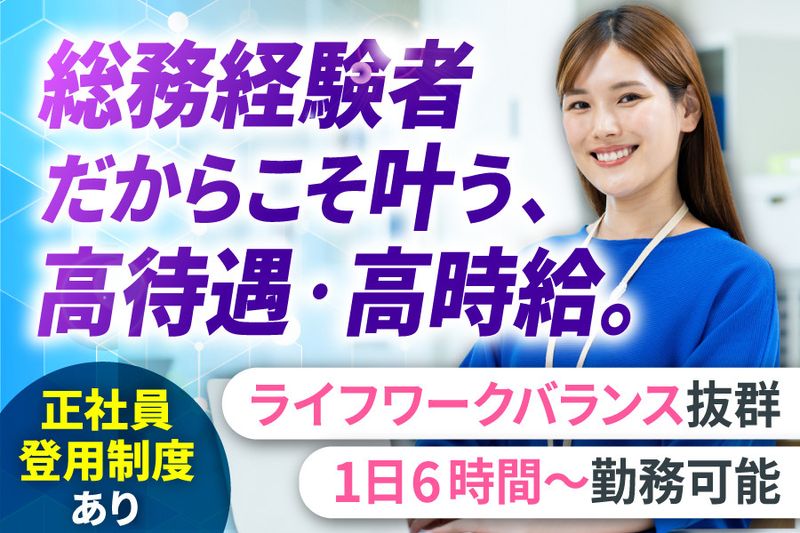 【応募資格】 ■応募資格 ・一般企業等での総務経験 ・基本的なエクセル(四則演算)、ワード、パワーポイントの操作ができる方 ・タッチタイピングが出来る方 ■非喫煙者のみ採用 従業員の健康を守るため、「受動喫煙・三次喫煙」防止の観点から、「非喫煙者」の方のみ採用しております。 ※「三次喫煙」とは、タバコを吸った後も30分~45分間は、喫煙者の息から有害物質が吐き出されることが報告されており、それが原因で喘息発作を起こす人もいます。 【メリット】 #リモート面接OK #40代も応募可 #学歴不問 #駅近5分以内 #育休制度あり #主婦・主夫歓迎 #未経験者歓迎 #経験者歓迎 #ブランクOK #交通費支給 #社会保険完備