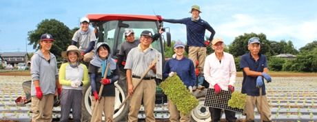 スーパーマーケットの専用農場にて農作業スタッフ