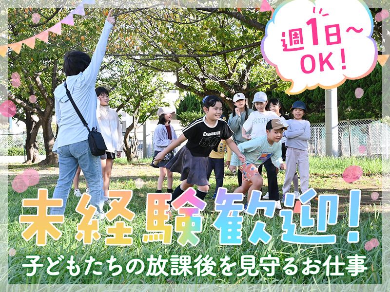 アピールポイント: \はじめやすさ重視の放課後ワーク♪/ ◆未経験スタート大歓迎! 特別な経験や資格は一切不要です。 未経験から始めたスタッフが多数活躍中! 分からないことは先輩スタッフが丁寧にサポートします。 ◆子どもと一緒に成長できるお仕事 子どもたちの成長を見守る中で、 「自分も成長しているかも?」 そんな気づきがある、やりがいのある仕事です。 ◆働きやすさもバッチリ! ・年齢・学歴・性別不問 ・週1日~OK ・主婦(夫)・ミドル・シニア活躍中 ・家庭、子育て、介護と両立しやすいと好評 ・WワークOK 「子どもが好き」 「人の役に立つ仕事がしたい」 そんな想いがあれば大歓迎です◎