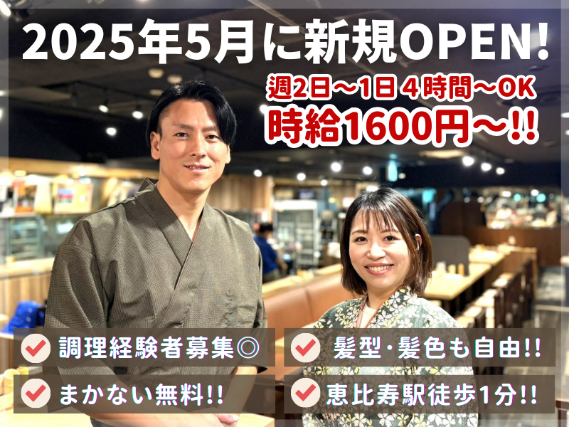 仕事内容 ⭐2025年5月、恵比寿に新業態OPEN!⭐ \「俺の」シリーズから【俺の炉ばた】が誕生!/ 新しい舞台を共に創り上げる 経験者キッチンスタッフを募集します。 ■仕事内容 ー ・肉の下処理や野菜カットなどの仕込み ・前菜やメインなどの調理 ・料理の盛り付け ・カウンターのお客様の接客 など ー 《 ✅即戦力としての採用 》 これまでのキャリアを存分に活かし、 「料理と本気で向き合える場所」で働きませんか? 炉ばた焼きという調理スタイルを通じて、 素材の旨みを最大限に引き出すお仕事をお任せします。 《 ✅キャリア/待遇について 》 経験やスキルに応じて、最初から高待遇でお迎えします。 実際に、入社から半年で料理長に抜擢された実績もあり、頑張りや成果がスピーディに反映される環境です。 将来的には料理長として店舗を牽引するだけでなく、商品開発や新ブランド立ち上げといった大きな挑戦にも関わることも可能。 これまでの経験を、次のステージへとつなげたい方を心から歓迎します! 《 ✅俺の炉ばたについて 》 恵比寿という街で、“俺の”シリーズの新境地を開拓。 既存の型にとらわれず、挑戦的なメニュー開発やダイナミックな調理演出も可能です。 お客様の目の前で豪快に焼き上げる炉ばた料理は、経験者だからこそ応えられる舞台です✨