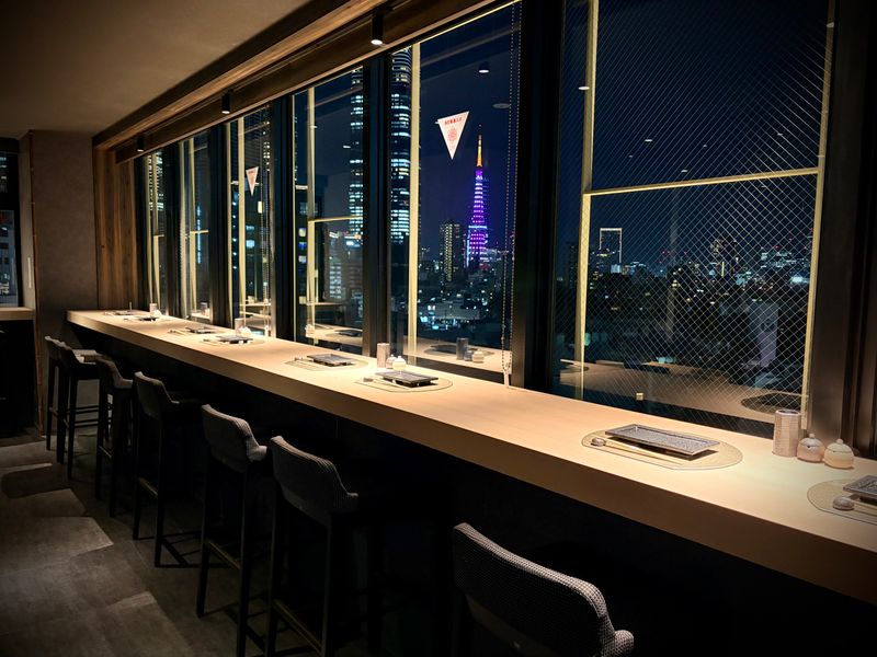アクセス: 焼鳥さいとう(東京都港区六本木6-2-6 GEMS六本木8F) ・「六本木駅」徒歩1分(日比谷線、都営大江戸線) ・「六本木一丁目駅」徒歩9分(南北線) ・「乃木坂駅」徒歩10分(千代田線) 野村不動産が運営するハイセンスなグルメタワー。 エントランスは煌びやかなプロジェクションマッピングでゲストをお出迎え。