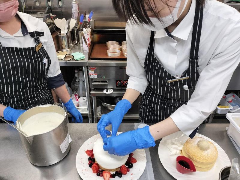 仕事内容 <憧れのカフェスタッフ> 初めてバイトの学生さんも応援! 選べるのが嬉しいまかないも大人気です! <具体的な仕事内容> ホール……お客様のご案内、オーダー取り、お料理・ドリンクの提供、レジ等 キッチン・カウンター……簡単な調理、ドリンク作り等 お仕事に慣れてきたら、自慢のふわふわパンケーキも作れるようになりますよ!