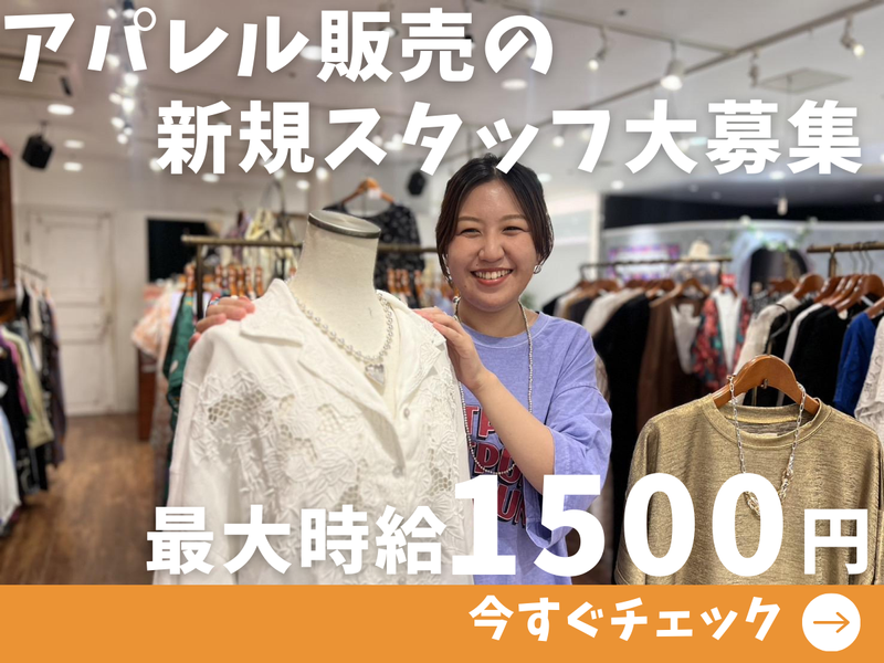 求めている人材 ✅フルタイムで稼ぎたい方大歓迎★ ✅長期働ける方、フリーターさん大歓迎 ✅20~30代を中心に幅広い年代活躍中 ✅活躍中 ⭐未経験者歓迎 ⭐初心者歓迎 ⭐無資格者歓迎 ⭐経験者歓迎 ⭐ブランクOK ⭐学生歓迎 ⭐フリーター歓迎 ・・・・・・・・・・・・・・・・・・・ 販売経験がある方はもちろん、 未経験でも接客やファッションに 興味があれば大歓迎です! 「コミュニケーション力や コーディネート提案力がある方は 活かせます◎」 ・・・・・・・・・・・・・・・・・・・ \ こんな方におすすめ / ◎アパレル関係への就職を考えている方 ◎洋服が好きな方 ◎接客や販売の経験がある方 ◎アルバイトデビューしたい方 ◎パートデビューしたい方 \ こんな方が活躍中 / ◎テストや授業など 学校の予定と両立する学生さん ◎しっかり稼ぐフリーターさん ◎販売経験者はもちろん 一般事務や営業事務、飲食ホール 受付、その他サービス接客業 インバウンドコールスタッフなどからの転職者 \ メリットたくさん / ☑長期歓迎!安定して働ける職場 ☑時間や曜日が選べる・シフト自由で自分時間充実 ☑土日祝のみOKのお仕事 ☑平日のみOK! ☑シフト制での勤務となります ☑フルタイム歓迎 ☑高収入・高額が稼げる仕事を探している方にぴったり ☑きちんと交通費支給します! ☑欲しいものが安く買える社割あり ☑丁寧に教えてもらえる研修あり ☑先々も安定して働ける社員登用あり ☑ずっと今のまま働ける!職種変更なし ☑授業と両立したい大学生歓迎 ☑未経験・初心者OK!お気軽にご応募ください ☑経験者・有資格者歓迎します! ☑家庭と両立したい主婦・主夫歓迎 ☑扶養内勤務OKのお仕事です ☑別の仕事との副業・WワークOK ☑ブランクOKなのでご安心ください ☑フリーター歓迎のお仕事 ☑学歴不問で採用します! ☑駅チカ・駅ナカの好立地で大募集 ☑英語が活かせるお仕事です ☑髪型・髪色自由で働けます ☑即日勤務OKです ☑友達と応募OKです
