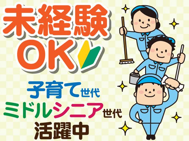 仕事内容 スーパーの清掃パート・アルバイト募集! 週3日の勤務!Wワーク・扶養内もOK。 主婦(夫)の方、子育て世代の方や、 ミドルシニア(中高年)世代の方など 幅広い年代の方が活躍中! <仕事内容> ヨークベニマル神町店でのお仕事です。 スケジュールに沿いながら作業を行います。 具体的にはお店の出入り口や、階段、通路、 トイレなどの掃除。 モップや掃除機を使った清掃。ゴミ回収など。 特別な経験・資格は必要ナシ! 作業内容をしっかり教えてゆくので、 普段のお掃除感覚からスタートできます。 清掃員の仕事が未経験から始めた方も活躍中! <働き方について> 短時間のお仕事です。 ・16:30~19:00 週3日の勤務シフト制です。 お気軽に働く曜日ご相談ください。 扶養内で働きたい。 Wワークを探してる。 短時間で無理なく働きたい。 など、プライベートに合わせて働けます。 日常清掃スタッフの一員として スーパーを利用する人々が快適に過ごせる 環境作りをしませんか? <企業の特徴> 「快適な居住空間を提供する」 という理念のもと、 時代のニーズに的確にお応えする ビルメンテナンスを心がけながら、 自信をもって働ける 明るく楽しい職場をめざしています。 当社では子育て世代の方、主婦(夫)の方、 ミドルシニア(中高年)世代の方など 幅広い年代のスタッフさんが活躍しています。