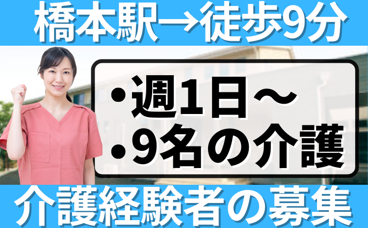 【相模原市緑区東橋本】 ■橋本駅から徒歩9分 ■9名の介護 ■残業なし ■経験があれば働き方は不問