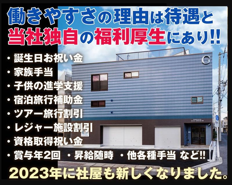 職場環境 《社員の年齢帯》 20~50代 中途転職の人が多いです 《職場環境は…》 1階が資材置き場、2階が受付があり、 3階に机と椅子が用意されています きれいな自社ビルなので、社内にいる時も快適に過ごせます! 喫煙所:喫煙所あり(屋外) 会社の前がコンビニなので、何かと便利です