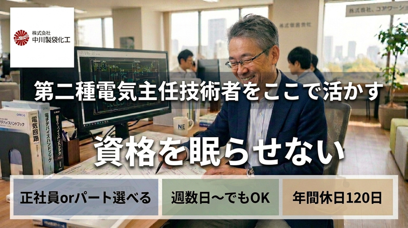 仕事内容 \工場の電気設備の保安監督・点検保守/ ⏩高圧受電設備(キュービクル)の保安監督 ⏩電気設備の定期点検・保守・トラブル対応 ⏩予防保全・設備更新の計画立案と管理 工場の安定稼働を支える電気設備管理をお任せします。 ▼簡単な募集内容▼ 【雇用形態】正社員(※週数日勤務・副業も可) 【給与】年収:350万円~500万円(時給:2,000~3,000円※副業の場合) 【勤務時間】8:20~17:20 【勤務地】滋賀県長浜市祇園町字対ノ御前773 【募集要件】電気主任技術者(第二種以上)+電気設備保守経験 ★この求人のアピールポイント★ ✅️日本初のレジ袋メーカー!創業95年以上の安定企業 ✅️土日祝休み×年間休日120日!残業ほぼなし ✅️転勤なし◎滋賀で腰を据えて働ける ✅️副業・兼業OK!週数日勤務も相談可能 ==================== 【どんな会社?】 中川製袋化工株式会社は、創業95年以上の歴史を持つ包装資材メーカーです。日本で初めてレジ袋を開発した企業として知られ、全国に展開する安定企業です。レジ袋やポリエチレン製品に加え、バイオマスプラスチックなど環境配慮型製品の開発にも注力。カーボンニュートラルや海洋ごみ問題への対応など、社会的意義の高い事業を展開しています。全国に工場・営業拠点を持ち、安定した供給体制と高い技術力で業界内の確固たる地位を築いています。 【お仕事内容】 滋賀工場にて電気設備の保安監督および点検・保守業務を担当いただきます。 具体的には ⏩高圧受電設備(キュービクル)の管理・保安監督 ⏩変圧器・配電盤・分電盤の点検、保守 ⏩製造設備(成形機・印刷機等)の電気系統の保守 ⏩設備トラブル時の原因調査と復旧対応 ⏩予防保全計画の立案・実施 ⏩設備更新・改修工事の計画および施工管理 ⏩電力使用量の管理・省エネ施策の推進 など、工場全体の電気インフラを支える重要なポジションです。 《入社後の流れ》 まずは工場内の設備や製造ラインを見学し、全体像を把握していただきます。その後は日常点検からスタートし、徐々に定期点検や保守業務へとステップアップ。 図面や過去の点検記録も整備されており、経験を活かしながら無理なく業務に慣れていただけます。 【会社の魅力】 ✅️創業95年以上の安定企業で長期就業が可能 ✅️残業ほぼなし!ワークライフバランス良好 ✅️社宅・寮ありでUIターン歓迎 ✅️社員食堂あり(1食280円) ✅️電気主任技術者として専門性を活かせる環境 安定した基盤のもと、電気のプロとして工場全体を支えるやりがいある仕事です。