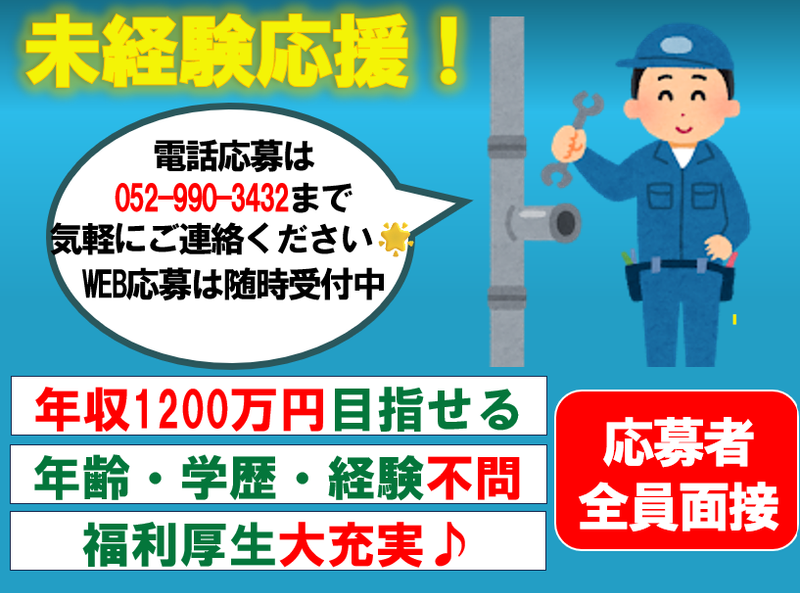 求めている人材 《必須条件》 ✅ 普通自動車免許をお持ちの方(AT限定可) ✅ お客様に明るく丁寧に対応できる方 ✅ 責任感を持って最後までやり遂げられる方 《歓迎条件》 ✅ 未経験歓迎(異業種出身者が多数活躍中) ✅ 学歴不問 ✅ 水道・電気工事などの資格や経験をお持ちの方は優遇 ✅ 将来的に正社員登用を目指したい方も歓迎 《こんな方に向いています》 ✅ 「とにかく稼ぎたい!」という意欲のある方 ✅ 自由度の高い働き方を求める方 ✅ 20〜30代で新しいことに挑戦したい方 ✅ 元気・笑顔を大切にできる方