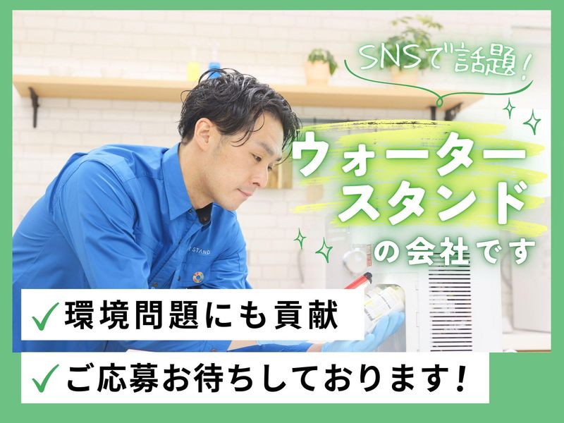 仕事内容 / 未経験でも大丈夫! 心機一転、始めてみませんか? 初めての転職も応援します◎ \ . 業績好調の "ウォータースタンド" 男性スタッフが多数活躍している職場です! 30代~40代の方も活躍中! まずはお気軽にご応募ください! . ================= この求人のポイント♪ ================= ◆経験・スキル不問! <普通免許があればOK>です☆ ◆年間休日<120日以上!> ◆未経験も安心の<サポート体制完備♪> ◆<スーパーフレックス制>で 理想の働き方が実現♪ ◆ノルマはありません!! . . ================= 仕事内容はこちら! ================= ✅設置・交換・撤去・修理  ̄ ̄ ̄ ̄ ̄ ̄ ̄ ̄ ̄ ̄ ̄ ̄ ̄ ご契約されたお客様先にて ウォータースタンドの設置を行います! 設置・修理・お手入れ方法の ご説明などは 入社後にしっかり研修を行うので どなたもご安心くださいね♪ . ✅サーバーメンテナンス  ̄ ̄ ̄ ̄ ̄ ̄ ̄ ̄ ̄ ̄ ̄ ̄ フィルター交換や作動チェックなど 既存のお客様先にて メンテナンスを行います! 1件40分ほどの時間が掛かるので お客様とのお話しを楽しみながら 作業をお願いします♪ お客様は法人から個人まで幅広く、 法人の場合は自治体と協定を結んだり "給水スポット" として さまざまな場所に設置されることも多いため、 「別の店舗でも利用したい!」 「友達の家でも利用したいと言っている」とご紹介をいただくケースもございます。 設置~アフターフォローまで一貫して担当できるので お客様との信頼関係もバッチリ★ . 上記業務をお任せします! 「ノルマ」は無いので ご安心くださいね♪ もちろん、 社用車や制服 タブレットや携帯電話などの 業務に必要なものは貸与! . . ================= 安心の<サポート体制!> ================= ◆入社後、まずは座学研修で 商品知識や訪問マナーなどを 基礎から丁寧にレクチャーします! ◆座学研修後は、OJT研修で 先輩に同行し実際の現場を 学んでいただきます! ◆独り立ち後も 階層別の勉強会や研修を実施♪ . 更に・・ 週に一度、 上長との面談を設けています。 ◎実務上のトラブル解決方法 ◎アドバイス・フォロー などなど・・ 些細なことから 相談できる環境が整っています♪ 安心してご応募ください☆ . . ============== <直行直帰>可能! ============== ご自宅から直接 お客様先へ訪問をし、 そのまま直帰OK! 勤務時間や休日は 自分で決められるので 週休3日の働き方も◎ フレックスタイム制ならではの 働き方が実現可能です♪ あなたが「働きやすい!」と思える ワークライフを見つけていきましょう! . . ============== 1日のスケジュール例 ============== 9時 自宅から出発! 近くのマンションで2件設置 12時 ランチタイム♪ 13時 新規のお客様先へ移動 14時 設置作業で1件訪問 15時半 機種変更希望のお客様先へ訪問 商品の交換と使い方の説明もします 17時 自宅へ直帰♪お疲れ様でした! . あるスタッフの1日の例ですが 上記のような働き方が可能です♪ . . =============== ウォータースタンドについて =============== 当社は、 「 2030年までに日本の 使い捨てプラスチックボトルを 30億本減らします。 」 というミッションを掲げ マイボトルを携帯する 新しい文化を創り、 気候変動とプラスチックによる 環境問題改善に取り組んでいます! 一般のお客様だけでなく 官公庁や公共施設、 企業などのお客様からも 幅広く支持いただいております♪ このような信頼のもと 事業は右肩上がりで成長中! . ☆SNSでも話題のウォータースタンド☆  ̄ ̄ ̄ ̄ ̄ ̄ ̄ ̄ ̄ ̄ ̄ ̄ ̄ ̄ ̄ ̄ ̄ ̄ . // あなたのご応募を お待ちしております! \\