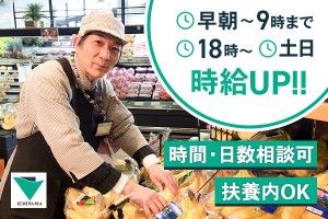 【いちやまマート上野原店】午前中だけの青果コーナースタッフ週3日~OK!主婦(夫)さん、シニアさん活躍中 午前中だけの勤務だから、1日を有効活用できます!子育て中の方も活躍!嬉しい保育料補助制度あり