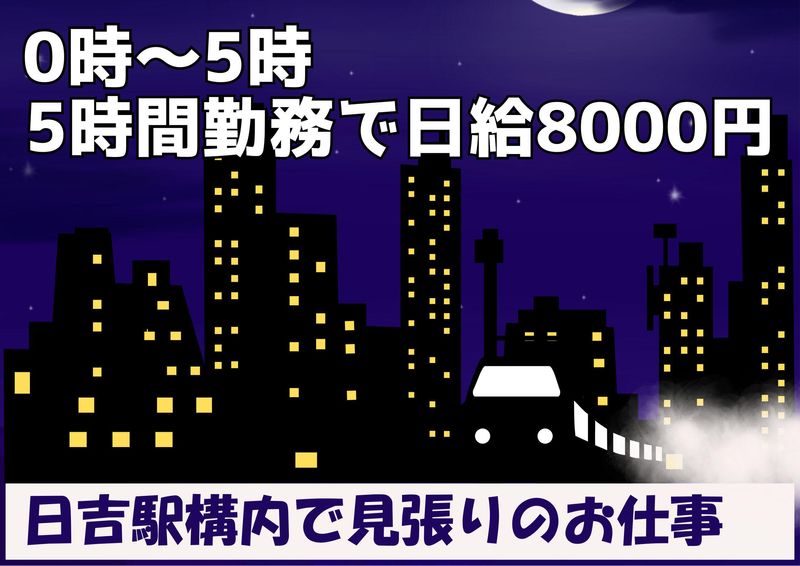仕事内容 5時間勤務で日給8000円◎ 駅チカ!田園都市沿線エリアでのお仕事! 線路沿いの夜間作業の現場となります。 駅構内での終電後から始発まで 通行人のご案内など、駅に人が立ち入らないように見張りをするお仕事です。 始発までに終えないといけない工事などの見張りなので、早めに業務が終了する可能性もあります。 早く終わっても日給保証! 未経験OK◎ ※詳細は面談の時にお伝えします。 ★日払いOK ※日給から7000円現金先払い ★ビッグボーナス最大15万円支給!! (3ヶ月以内44勤務→10万円、その後無期限 88勤務達成→5万円) ★★スマホで応募から勤務まで完結★★ 応募→WEB面接→シフト申請→お仕事確定→出退勤報告 事前研修は渋谷で3日間、丁寧にレクチャーします。
