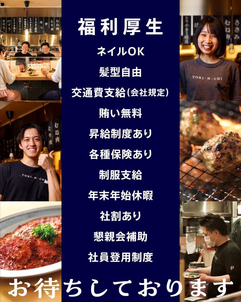 仕事内容 【2026年3月2日OPEN!】 とりやき酒場 鶏ん家 博多祇園店で 新メンバーを大募集します♪ 一緒にお店を盛り上げてくれる方大歓迎! ★オープニングスタッフ大募集★ 「華味鳥」を使ったとりやき酒場です! 牛や豚を使わないから においも気になりにくい♪ <仕事内容> ホール業務が中心のシンプルワーク! ✅お客様のご案内 ✅ご注文のお伺い ✅料理のご提供 ✅テーブルの片付け・リセット ✅店内の簡単なお手伝い など まずは元気な挨拶ができればOK! 少しずつできることを 増やしていけば大丈夫です◎ <キッチン業務も同時募集> ⭐下ごしらえや盛りつけの補助 ⭐仕込み済みの食材を調理機器へセット ⭐できあがった料理を仕上げ皿に盛る ⭐使用した器具の片付け カンタン4ステップで覚えやすい♪ ⭐⭐⭐ ここが魅力のPOINT ⭐⭐⭐ *交通費支給(当社規定) 通勤の出費なし◎通学区間でもOK! *美味しいまかないあり 食費も浮いてお腹も満たされます! *昇給あり(年2回査定) 頑張りはしっかり反映されます! *賞与あり(年2回) ※業績による 臨時収入でモチベーションもUP★ *社員登用制度あり 腰を据えて働きたい方にもおすすめ!