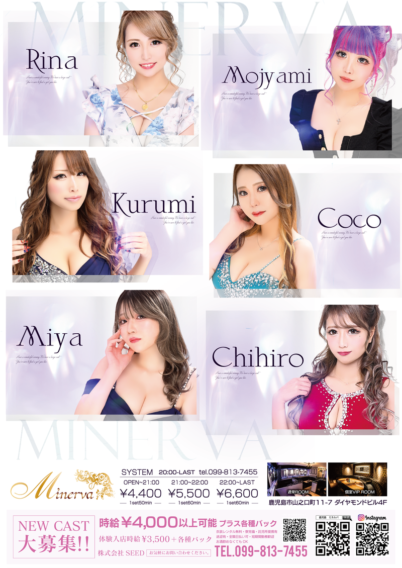 仕事内容 仕事内容 安心からスタートできるフロアレディ ◎お客様と楽しく会話をしたり、簡単なお酒を作ったりするお仕事です。 ◎お客様のテーブルをまわり、会話を楽しむ。 ◎ドリンクのオーダーを取り、簡単なお酒を作る。 ◎店内清掃や準備など。 【未経験者さんへ】 ナイトワークデビューを応援! 最初から一人で接客をお任せすることはありません。 まずは先輩キャストのサポート役からスタートし、 お酒の作り方やマナーなど、基本的なことから丁寧に教えます。 ゆっくりお店の雰囲気に慣れていってくださいね。 【MINERVA(ミネルバ)の安心ポイント】 ✅ノルマ・待機カット一切なし:自分らしく、のびのびと働けます。 ✅安心の環境:同業者、泥酔者、暴力団関係者の入店は固くお断りしています。 ✅30代の方も大歓迎:落ち着いたトーンを好むお客様も多くいらっしゃいます。若いノリが苦手な方もご安心ください。 ✨給与・報酬✨ 高時給+高バック率で短時間でもしっかり稼げる! 時給:3,500円~ 入店時給:3,500円~(体入時給も同額) 全額日払いOK!:急な出費にも安心です。 待機時給カットなし:無駄なく稼げます。 ✨業界トップクラスの充実バック✨ 指名バック率:100% ドリンクバック率:30~40% ボトルバック率:30~40% VIPルームでの接客時は室料等もバックに還元 売上ボーナス:月3回支給! ※入店後の時給、バック率、ボーナス査定は勤務日数等で条件変動します。 詳細は面談にてご確認ください。 ✨待遇・福利厚生:働く女性を徹底サポート✨ ✅新着ドレスプレゼント:入店された女の子全員に、自分だけのドレスをGETできるチャンス! ✅レンタル衣装無料!:種類豊富な可愛い衣装を無料でレンタル可能。手ぶらで出勤OK! ✅託児所支援金制度あり:お子様のいるキャストさんを応援!託児所利用の方にはお子様1人につき最大3万円支給可能です。 ✅送りあり:帰宅時もストレスなく、安心・ラクラク帰宅! ✅昇給・各種ボーナスあり ✅経験者優遇 ✅シフト自己申告制 【勤務時間・休日】 あなたのペースで働けます 営業時間:20:00~LAST 週1日~OK 1日3時間~OK(短時間勤務可能) 定休日:月曜(日曜営業あり!) 【シフトの柔軟性】 お昼のお仕事やプライベートが忙しい方も、 シフト自己申告制なので「働きたいときに働く」が叶います。 短時間でも時給とバックでしっかり稼げるため、 効率よく高収入を得たい方に最適です。