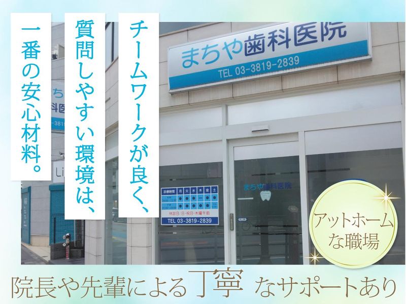 仕事内容 町屋で長く続く歯科医院で、受付や診療のアシスタントを行うお仕事です* 【業務内容】 ・受付 ・予約管理 ・診療室へのご案内 ・診療のサポート ・診療準備、片付け ・電話対応 など 専門知識や技術は入社後に覚えていけば大丈夫。 未経験の方やブランクのある方も安心してくださいね♪ ―――――――――――――――――――― ✅まずは診療アシスタント業務からスタート ―――――――――――――――――――― 入社後は、診療を支えるサポート業務から覚えていきます! 例えば、治療で使う器具の準備や、診療後のチェア周りの片付け、院内清掃など、難しい作業はないのでご安心ください* 院内業務に慣れてきたら、受付や電話対応、予約管理などの業務へとステップアップ。 仕事の流れを覚えながら、少しずつできることを増やしていきます! 1年後には、患者さんからの簡単な質問にも答えられるくらいの知識が自然と身についていますよ◎ ―――――――――――――――――――― ✨まちや歯科医院で働く魅力POINT ―――――――――――――――――――― ✅未経験でも安心の教育体制 実は、現在働いているスタッフも全員未経験からのスタート。院長や先輩スタッフがそばでサポートしながら、数ヶ月かけて丁寧に教えていきます! 最初の不安な気持ちを理解したうえでフォローしますので、焦らず自分のペースで成長できる環境です◎ ✅土日祝休みでワークライフバランス◎ 土日固定の休みに加えて祝日もお休みなので、リフレッシュの時間がしっかり取れます♪ 祝日や連休も暦通りなので、家族や友人との予定も合わせやすさ抜群です! ✅午前は自分時間!平日の時間も充実 通勤ラッシュとも無縁で、落ち着いて出勤できるのも嬉しいポイント! 「午前中はゆっくり起きてブランチでも食べよう」 「朝から家事を済ませて、お昼もゆっくりお家で食べよう」と、午前の時間を自分の思うままに充実させられます* ―――――――――――――――――――― ✨三世代が通う「まちや歯科医院」 ―――――――――――――――――――― 患者さんの多くは近所にお住まいの方。親子・祖父母まで何世代にもわたって通ってくださる患者さんもいて、地域に長く愛されてきました。顔なじみの患者さんから声をかけていただくことも多く、下町らしい、ほっとする雰囲気の医院です* 院長は保育園や小学校・中学校の校医も務めており、幅広い年齢の患者さんが来院される当院では、患者さんの話の「聞き役」になることを何よりも大切にしています。 「先週体調を崩しちゃって」 「明日は子どもの発表会で」 体調のことや家族のこと、日常のちょっとした出来事など、当院が大事にしている“何気ない会話”。 普段から人と話すのが好きな方や、誰とでもフレンドリーに対応できる方は、「得意」や「好き」を大いに活かせる環境です♪