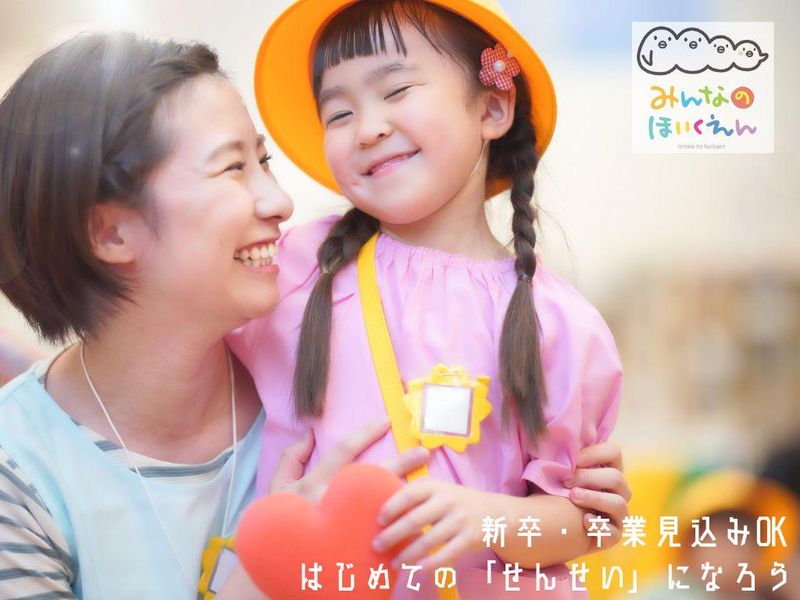 仕事内容 【2026年4月スタート~2027年4月スタートもOK!】 取得見込みもOK!保育士さん ☆******☆******☆****** // ちょっと不安…でも、それ以上にワクワク♪ あなたが笑顔なら、子どもたちも笑顔に〃^^〃 \\ 初めての社会人生活 知らないことばかりで、ちょっとドキドキ… でも、子どもたちと過ごす時間を思うと、 やっぱり“ワクワク”の方が大きいはず! そんな“はじめての気持ち”を、 経験豊富な先輩たちが支えてくれる環境です! ――先輩とペアで、安心スタート! 入社後はまず、担任の先生のサポートからスタート 1~2ヶ月ほどはペアで動くので、 子どもの対応や声かけの仕方も、すぐ近くで学べます! 子どもがぐずって戸惑ったときも、 「こうしてみようか」と一緒に動いてくれる先輩がいます! ちょっとした悩みも気軽に話せるので安心です ――初めての保育でも、無理なく先生デビュー! 記録や準備に集中できる【ノンコンタクトタイム】や、 落ち着いて休める【専用休憩スペース】も完備 そして、【持ち帰り仕事ゼロ】を徹底しています! 子どもたちと同じように、先生も一歩ずつ成長していく 「できるかな?」が「できた!」に変わる瞬間を、たくさん感じてください! 》仕事内容 【みんなのほいくえん】で0~2歳児(定員19名)の保育を担当します まずは先輩保育士と一緒に、子どもたちの生活をサポートするところからスタートします ◎ 子どもたちの生活・遊びのサポート 食事や排泄、午睡(お昼寝)のサポートなど、日常生活を見守りながら、少しずつ「自分でできた!」という成功体験を積ませてあげます 実際には「おむつを替える」「一緒に絵本を読む」「好きな遊びに付き合う」など、家庭に近い雰囲気で関わる時間が多いです ◎ 保育計画・記録 毎日の保育内容や子どもたちの様子を、タブレットやスマホで記録 業務支援アプリを導入しているので、手書きの負担が大幅に軽減されています (記録の書き方も丁寧にレクチャーするので、未経験でも安心です) ◎ 保護者対応や連絡帳の記入 保護者とのやり取りは「今日こんなことができましたよ」といった日常の報告が中心 (難しい対応は先輩保育士がフォローするので心配いりません) ◎ 園内の清掃・衛生管理 子どもたちが安心・安全に過ごせるよう、毎日の清掃や消毒を分担しています ☆******☆******☆****** \【みんなのほいくえん】のポイント/ [ノンコンタクトタイムで集中できる!] 子どもと直接関わらない時間〈ノンコンタクトタイム〉をしっかり確保 記録や準備に集中できるので、仕事を持ち帰る必要はありません [専用の休憩スペースあり!] 職員専用の休憩室で、ゆったり一息 お茶を飲んだり、軽く仮眠を取ったり…メリハリを大切にできる職場です [先輩スタッフの手厚いフォロー] はじめから一人で担任を持つことはありません まずは補助業務からスタートし、わからないことがあればすぐに聞ける環境です