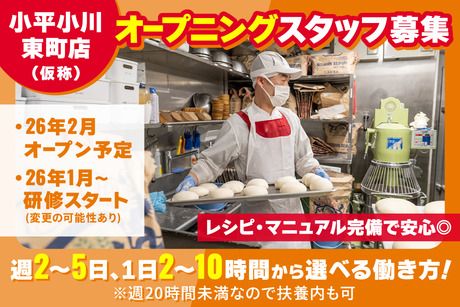 仕事内容 【 お仕事内容 】 ★午後から働ける短時間勤務! ★柔軟なシフト体制でWワークにも♪ ★パン売場の補充・陳列メイン ★接客少なめ/裏方作業♪ ――――――――――――― こんなことをお任せします! ――――――――――――― ・パンの袋詰め ・商品の箱詰め・値付け ・品出し ・発注業務(慣れてきたら) パンが好きな方大歓迎! パンのいい香りに包まれながら 楽しくお仕事しませんか? 【 オーケーの魅力♪ 】 ■仕事終わりにそのまま買い物できる♪ 「時間も手間も節約できて助かる!」 という声が多数届いています! ■自分のスタイルに合わせて 週2~5日でムリなく働ける! 家事や育児、プライベートと 両立しやすい働き方が可能です! 「家庭優先で働きたい」 「久しぶりの職場復帰で少しずつ始めたい」 そんな方にもピッタリです! ■ゆとりある人員配置で安心 1店舗あたり社員さんが22~23名いるので、 わからないこともすぐに相談できて安心♪ 業界的にも社員数が多い職場だから、 とっても心強いですよ! 【 しっかりした研修あり 】 \\2026年1月から研修スタート!(変更の可能性有)// 新店オープンに向けて、 しっかり準備ができる体制が整っています! <事前研修あり> ・他店舗での“お試し勤務”で現場を体感! ・合同研修で仲間と一緒に学べる♪ ⇒既存店舗で、仕事のやり方やルールまわりなど 基礎から実践までじっくり身につけられます! < オープン後のサポートも充実> ・経験豊富な社員がしっかりサポート! ・分からないことも、すぐに聞ける環境◎ ⇒オープン初日から1人にさせない安心の職場です♪ 【 小平小川東町店へのアクセス詳細 】 萩山駅南口から出ていただき、 ロータリーを右手へ進みます。 萩山団地を抜けて信号1つと踏切1つを渡ると 左手にお店が見えます。 萩山駅から徒歩8分程度です。 西武線「小川駅」 JR武蔵野線「新小平駅」 西武多摩湖線「八坂駅」 など、様々な路線からのアクセスも良好です◎ 【 勤務形態について 】 この求人はアシスタントパートナー社員の募集です! アシスタントパートナー社員とは? アルバイト・パートとして、週20時間未満で働く 扶養内勤務可能な勤務形態です! ※アシスタントパートナー社員以外には パートナー社員という働き方もあります。 社会保険に加入でき、週20時間以上働く勤務形態です。 週40時間のフルタイム勤務など 契約社員のような働き方も可能です。