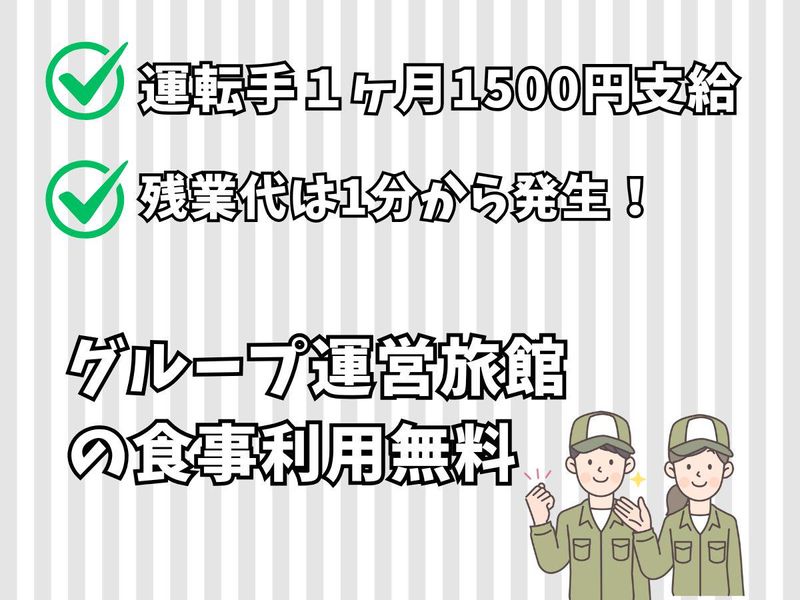時給1,400円以上 給与詳細 基本給:時給 1400円 〜 運転手当支給/月1500円 【給与例】 給与例 時給1400円×月21日×1日8時間+運転手当1500円 ⇒月々23万6700円の収入