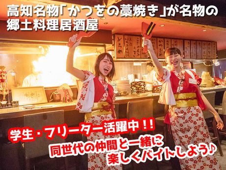 仕事内容 《ホールスタッフのお仕事》 ・席へのご案内 ・注文取り ・料理運び など。 まずは笑顔で「いらっしゃいませ!」からスタート♪ 先輩スタッフがすぐそばでしっかりサポートするので、 未経験の方も安心して始められます◎ - 研修あり(同条件) *研修の一環として、他店舗での勤務(ヘルプ業務)あり - 《未経験でも安心のワケとは?》 先輩達の多くが未経験スタート! 初めてで不安...な気持ちがよ~くわかります。 だから、 挨拶の基本~メニューまで 優しく丁寧に指導するのはもちろん、 お仕事中も先輩スタッフが近くにいて、 困った時はすぐフォローします! 《四万十川》 四万十川をモチーフにした川の流れを感じながら、 美食を堪能いただける、土佐郷土料理専門店です。