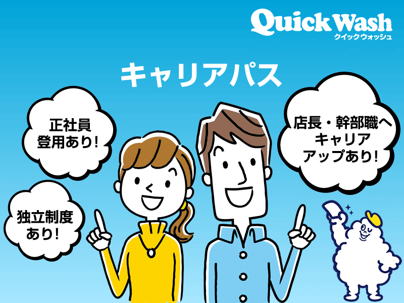 仕事内容 ―――――――――――――――――――― 全国展開中のクイックウォッシュで 正社員として安定して働きませんか? ―――――――――――――――――――― 【お仕事内容】 お客様がショッピングを楽しんでいる間に 車をピカピカにしていただきます! 車種により異なりますが、 1件の作業時間は30分程度です。 【具体的な流れ】 ✅予約受付:お客様からの予約に対応 ✅洗車作業:お車の洗車(手洗い) ✅清掃業務:備品や店舗内の清掃 【勤務地】 ●クイックウォッシュ あまがさきキューズモール店 上記店舗での勤務となります。 勤務店舗や兼任の有無は、 適性を考慮して決定いたします。 ―――――――――――――――――――― \◆未経験歓迎◆/ 専門的なスキルは不要! 丁寧な研修でしっかりサポートします。 お気軽にご応募ください✨