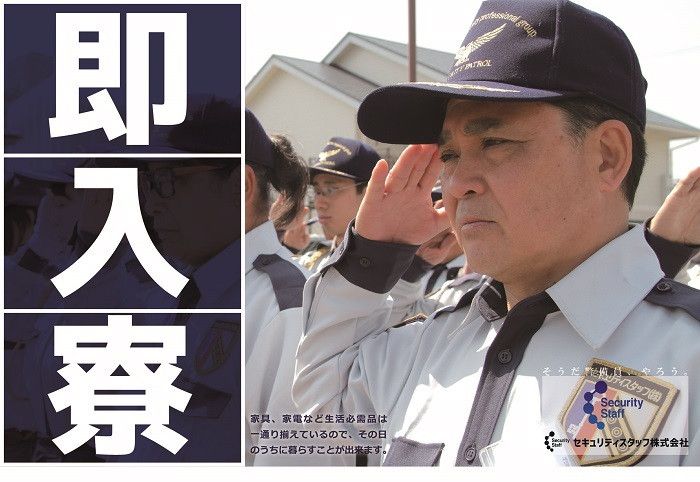 【仕事内容】 【具体的な仕事内容】 工事現場にて、安全を確保するお仕事です。 ■車の通行誘導 ■車両の出入りのサポート ■安全確保のための歩行者へのお声掛け など ※勤務場所と勤務内容は現場により異なります。 【警備員募集】 「そうだ 警備員、やろう!」のCMでお馴染み。 セキュリティスタッフ株式会社にて、 警備員を募集いたします。 「即面接、最短1日以内のスピード採用」 を実現する当社。 安定した新しいキャリアを、スピード感を持って全力でサポートします! ✅履歴書不要、WEB面接も可能! ✅面接交通費支給(¥1,000~¥2,000) ✅ご応募いただいた方と全員面接実施中! ✅入社日の相談可 ✅出張面接もOK! ※規定あり 【入社時プレゼントを贈呈中!】 下記より1つお好きな特典をプレゼントします! ・寮費3ヶ月無料 ・原付プレゼント ・車購入費用10万円補助 ・車検費用負担 ==================== 理想の職場を追求しています! ==================== 長く安定したキャリアを築いていただけるよう、 働きやすい環境の整備には力を入れています。 ✅直行直帰可! ✅現場が早く終わっても日給保証 ✅3ヶ月に1度、給与UPや昇格のチャンスあり! ✅全額会社負担で資格取得可能 ✅家具家電完備の寮に即入寮可! ✅最新のスマホを貸与 スマホで出退勤管理や位置確認が可能です! など、上記はほんの一例です。 ========================= ⭐数字で見るセキュリティスタッフ ========================= 一般隊員の最高月給 :33万円 最短終了現場 :5分(日給保証) 面接から入寮までの最短時間:1時間 最短昇給 :4ヶ月 最短隊長抜擢 :3ヶ月 最年少隊員 :18歳 最高齢隊員 :84歳 出戻り人数 :18人 交通誘導2級資格最短取得 :4ヶ月 公共事業と民間事業の警備業務の割合は50:50。 閑散期がなく年間を通じて安定して稼ぐことが可能です! 新たなキャリアへの第一歩を、 早速踏み出してみませんか。 ぜひご気軽にお問い合わせくださいね! 【求人ID-GKJ】